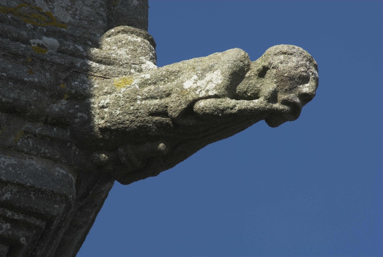 Tour ouest, détail d'un élément sculpté (fausse gargouille)Immatriculation