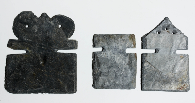 Maison Cornec. Détail de lignolets (éléments d'origine déposés lors de la restauration)Immatriculation