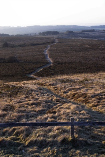 Vue depuis le Ménez-Mikel vers l'ouest : chemin de randonnée sillonnant la landeImmatriculation