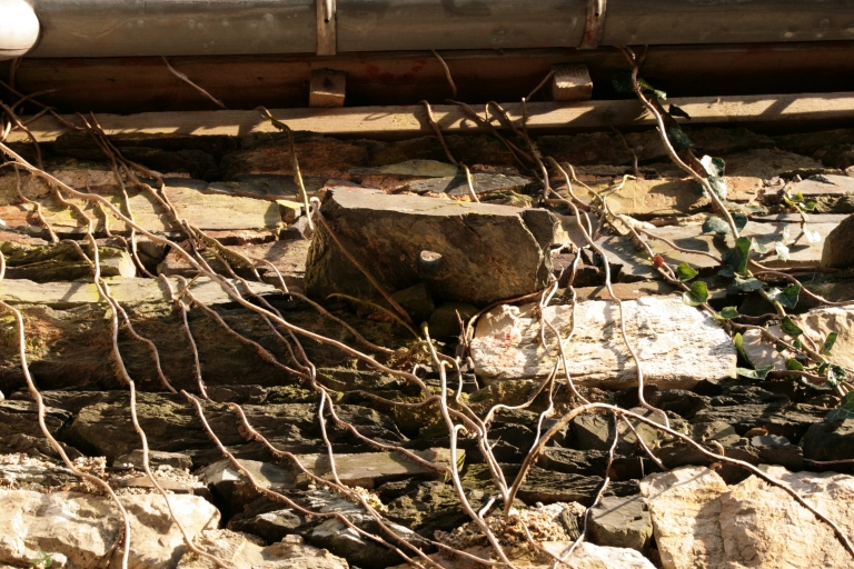 Logis 8, détail d'une pierre d'attache pour acrocher l'échelle lors de la réfection de la toitureImmatriculation