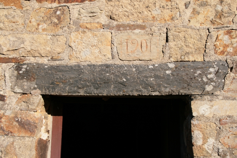 Logis-étable 2, détail du linteau en schiste et date gravéeImmatriculation
