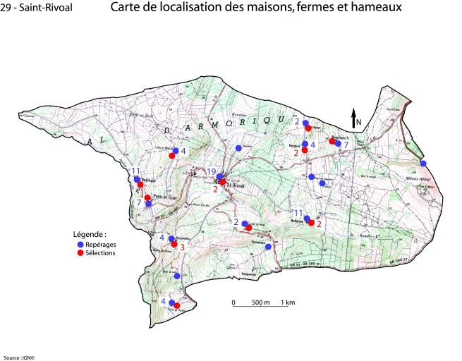 Les maisons, fermes et hameaux de la commune de Saint-Rivoal,