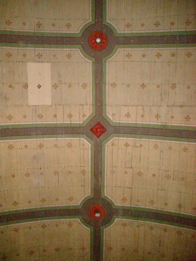 Ploudiry, église paroissiale Saint-Pierre : lambris de couvrement dans la nef, détailImmatriculation