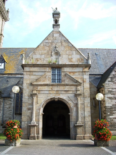 Plouvorn, église paroissiale Saint-Pierre : porche sud, détailImmatriculation