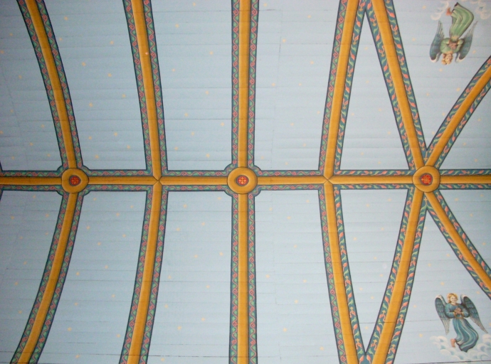 Plouvorn, église paroissiale Saint-Pierre : lambris de couvrement dans le choeur, détailImmatriculation
