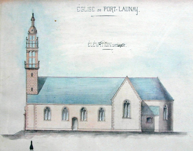 Elévation sud. Dessin de Joseph Bigot, 1855 (A. E. Quimper, 8 L)Immatriculation