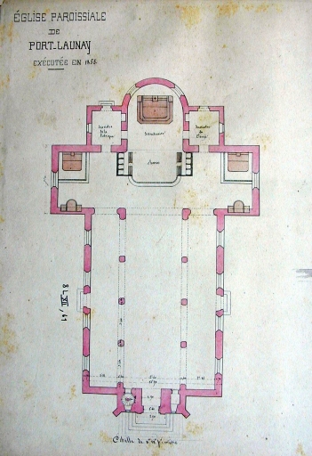 Plan au sol. Dessin de Joseph Bigot, 1855 (A. E. Quimper, 8 L)Immatriculation