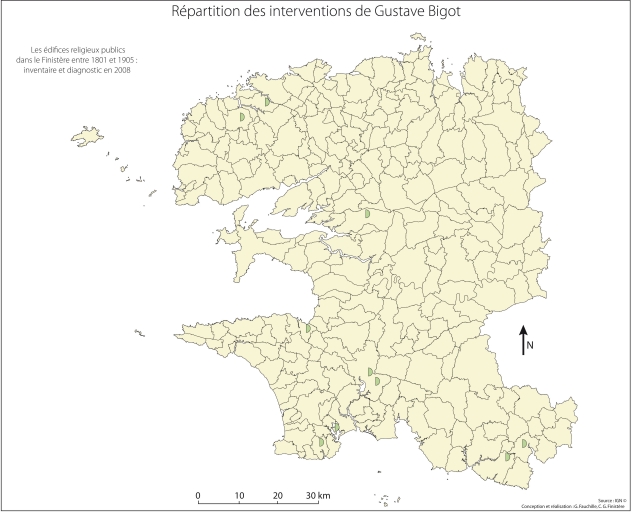Carte de répartition des interventions de Gustave BigotImmatriculation