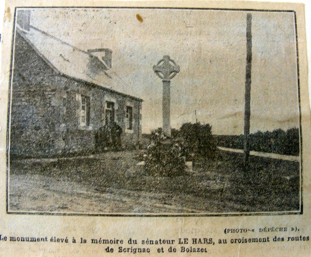 La croix vers 1930. Extrait de journal (A.D. Finistère, 34 J 75, fonds Le Guennec)Immatriculation