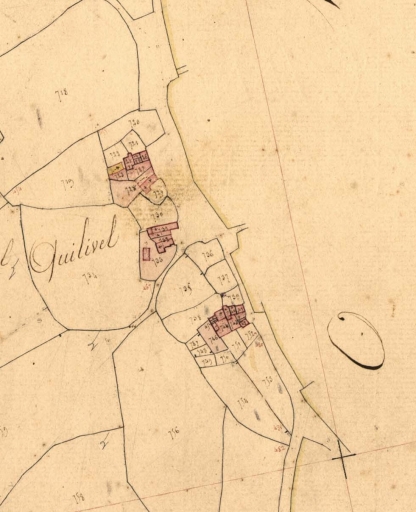 Le hameau en 1836 Extrait du cadastre, section P 2 (A.D. Finistère, 3 P 277)Immatriculation