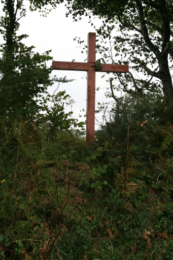 Lannuzon. Croix marquant l'endroit de la mort de l'abbé Jean-Marie Perrot, curé de ScrignacImmatriculation
