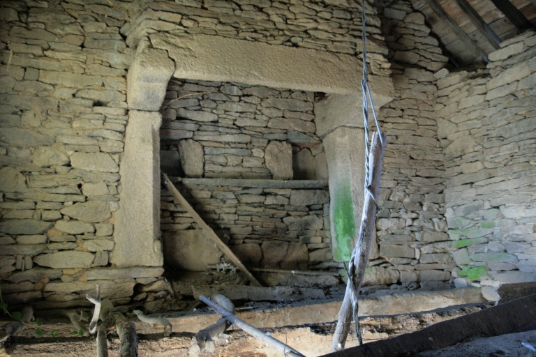 4. Ancienne ferme de type logis sur étable, 17e siècle. Détail de la cheminée de l'étage. Section C1 parcelle 61Immatriculation