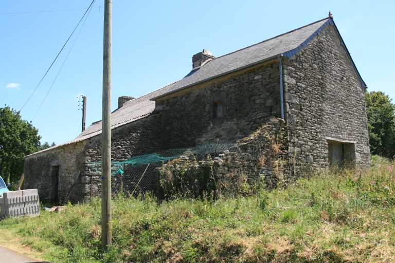 6. Alignement : fournil surmonté d'un haut comble à surcroît ; logis élémentaire à deux fenêtres, 1891 ; étable. Vue générale nord-ouest. Section F2 parcelle 579Immatriculation
