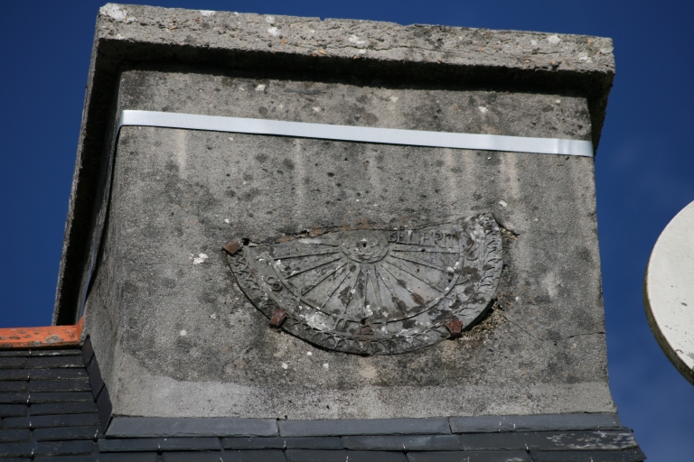Logis 1, souche de la cheminée, détail du cadran solaire casséImmatriculation