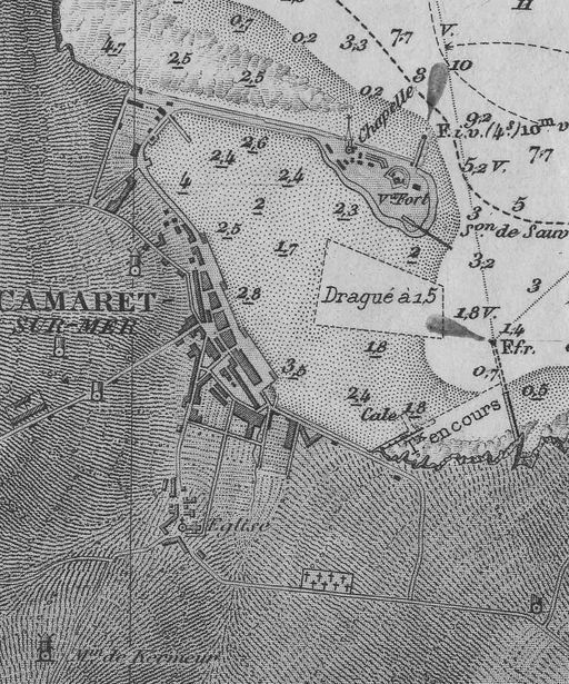 Extrait de la carte "Entrée de Brest", Paris : Service hydrologique de la Marine, levée en 1897 et 1899, 1901, 4e édition 1950, n° (M) 5071.