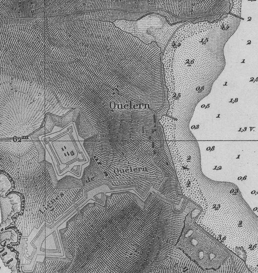 Extrait de la carte "Entrée de Brest", Paris : Service hydrologique de la Marine, levée en 1897 et 1899, 1901, 4e édition 1950, n° (M) 5071.