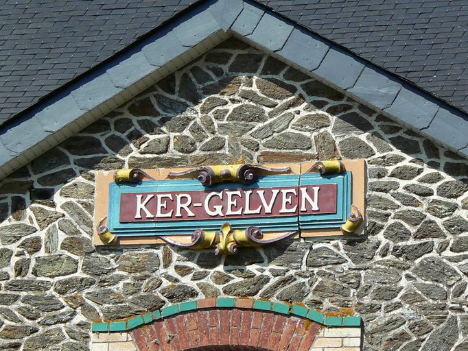 Plaque décorative indiquant le nom de la résidence sur le pignon coupé de la façade principale de la résidence Ker GelvenImmatriculation