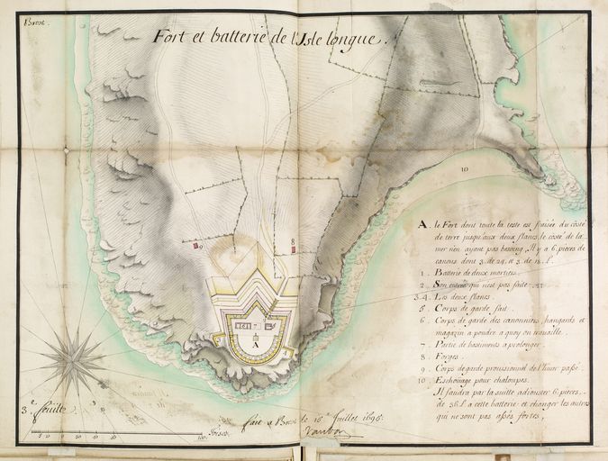 Plan du fort et batterie de l'île Longue, fait à Brest le 15 juillet 1695 et signé par Vauban. Bibliothèque du Génie, Manuscrit in f°33g tome 2 atlasImmatriculation