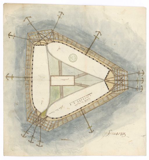 Collection Nivart. MS144_232. Plan d´un fort flottant. Sign. F. Martin. 1695.Plan, support papier, 0,400 x 0,425 mètre, 4e quart 17e siècle, 1695.