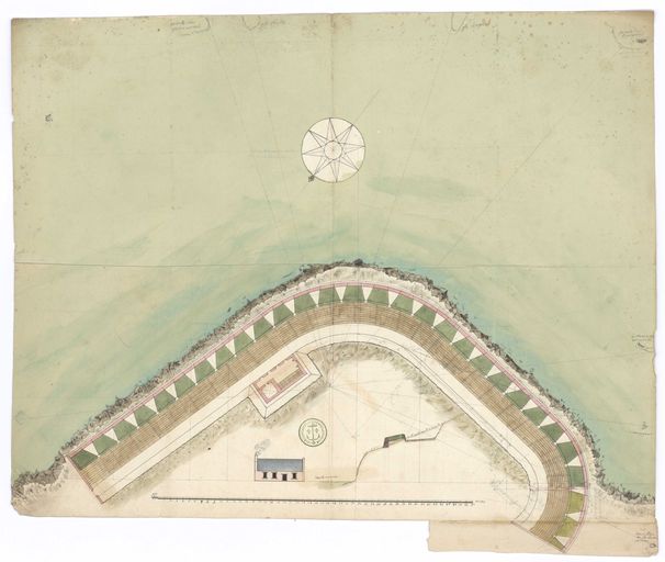 Collection Nivart. MS144_230. Batterie du Portzic. Plan et coupe du projet. Fin du 17e siècle. Plan, support papier, 0,537 x 0,449 mètre, 4e quart 17e siècle.
