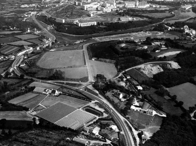 Vue aérienne oblique du fort de Penfeld en 1972. Au premier plan : la route de BrestImmatriculation
