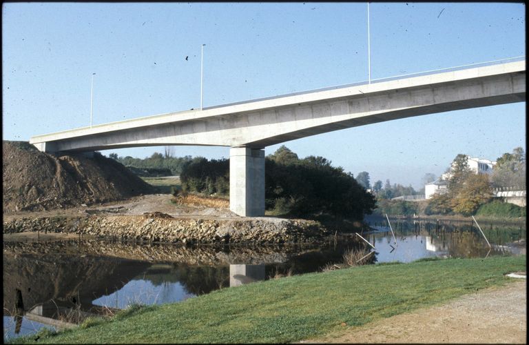 Vue de la Penfeld en 1980 : pont de la Villeneuve en construction suivant la technique du béton précontraintImmatriculation