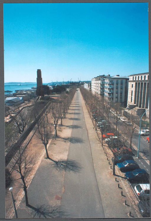 Vue d'ensemble de la promenade du Cours Dajot et du Monument Américain à Brest. A l'arrière plan : la rade et le goulet de BrestImmatriculation