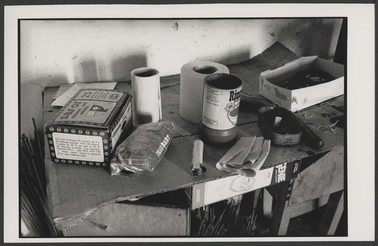La prison de Pontaniou par Bruno Ravalard, 1989 : objets posés sur une étagère dans l'une des cellulesImmatriculation