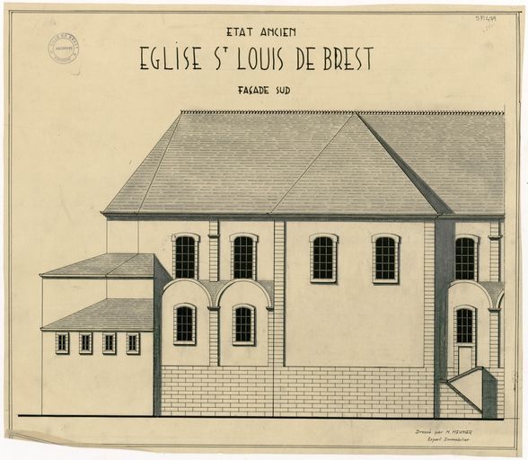 Elévation de l'église Saint-Louis à Brest : façade sud, 1895 par Meunier, expert immobilierImmatriculation