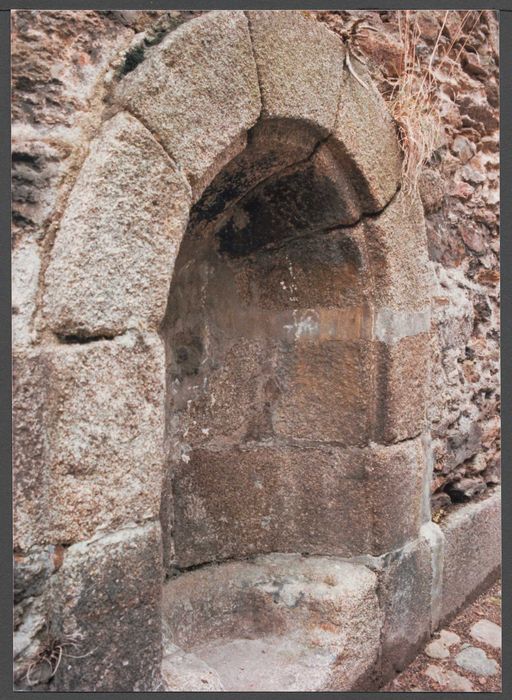 Vue de la fontaine en 1986 : elle est voûtée en granite de l'Aber-IldutImmatriculation