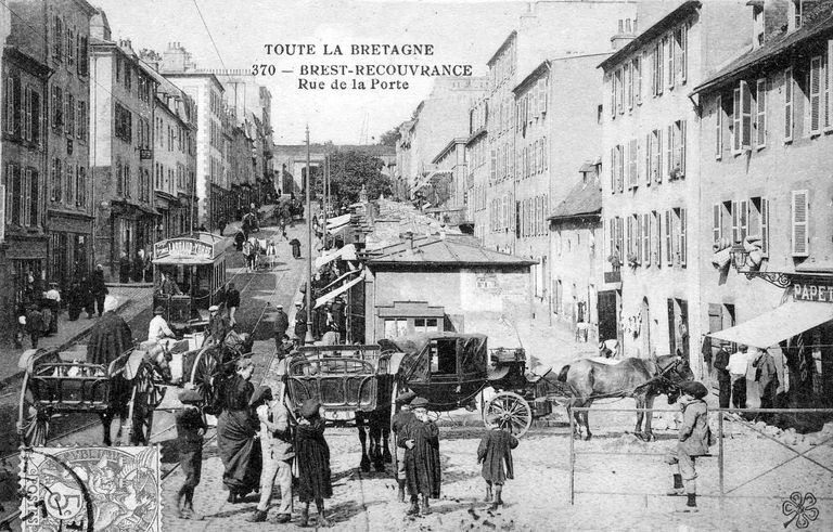 Vue du quartier de Recouvrance à Brest : rue de la porte, porte du Conquet. Carte postaleImmatriculation