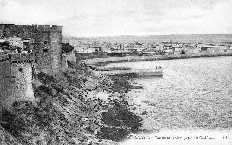 Vue du château de Brest : la grève, le Port de Commerce, carte PostaleImmatriculation