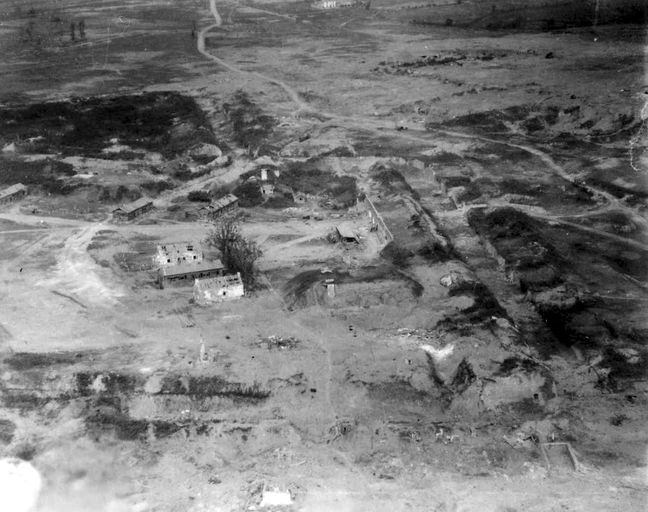 Vue de la festung Brest pendant la bataille de Brest, U.S. Army Signal Corps, septembre 1944 : vue aérienne oblique du Fort de mer et de terre, batteries du Portzic (Stützpunkt Portzic) (B 90-112)Immatriculation