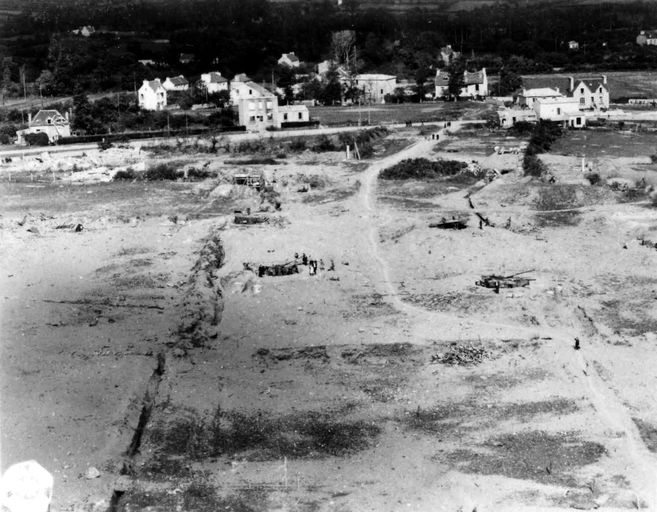 Vue de la festung Brest pendant la bataille de Brest, U.S. Army Signal Corps, septembre 1944 : vue aérienne oblique de la batterie antiaérienne codée M.K.B. Zebra (4 canons de 10,5 cm ; 2 canons de 2 cm) (2 / Ma Fla 811)Immatriculation