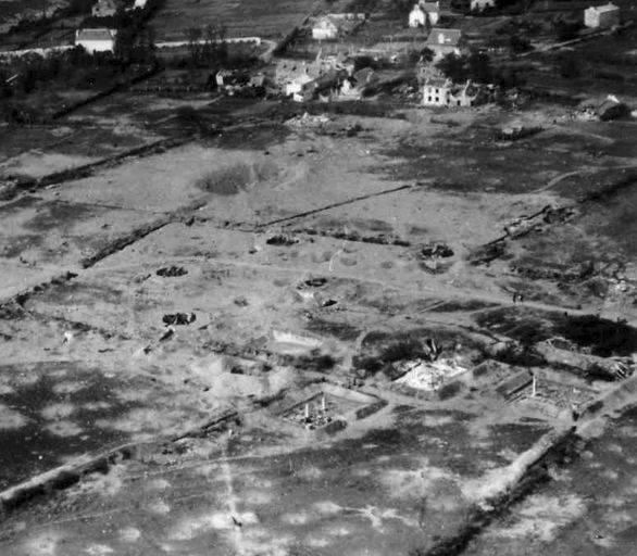 Vue de la festung Brest pendant la bataille de Brest, U.S. Army Signal Corps, septembre 1944 : vue aérienne oblique de la batterie antiaérienne codée M.K.B. Zebra (4 canons de 10,5 cm ; 2 canons de 2 cm) (2 / Ma Fla 811)Immatriculation