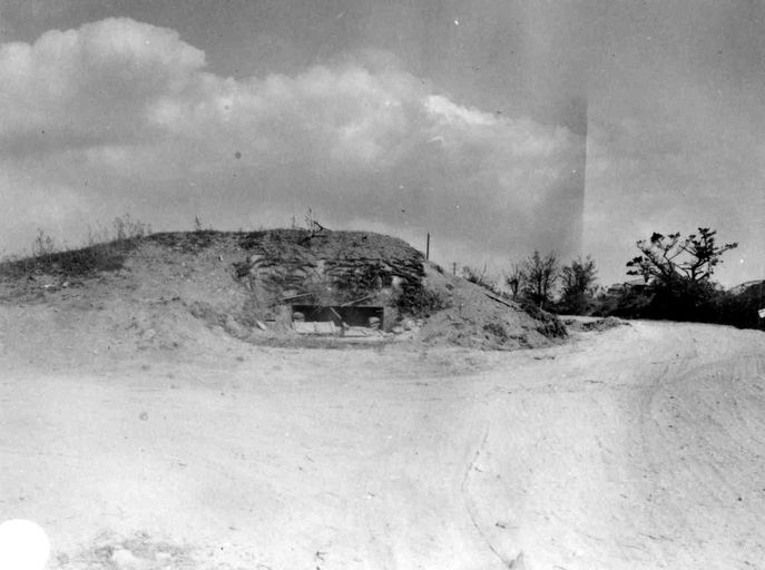 Vue de la festung Brest pendant la bataille de Brest, U.S. Army Signal Corps, septembre 1944 : casemate pour canon antichar située sur la route du Conquet (à proximité du fort Montbarrey) à l'ouest de BrestImmatriculation