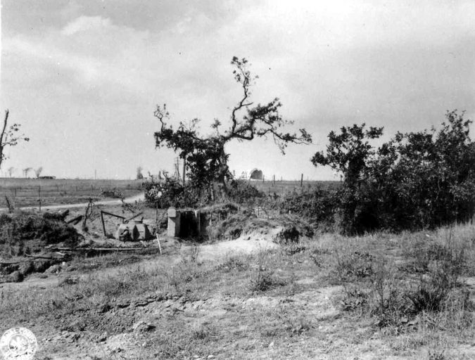 Vue de la festung Brest pendant la bataille de Brest, U.S. Army Signal Corps, septembre 1944 : Tobrouk pour tourelle de char pour canon antichar située sur la route de Saint-Anne à l'ouest de BrestImmatriculation