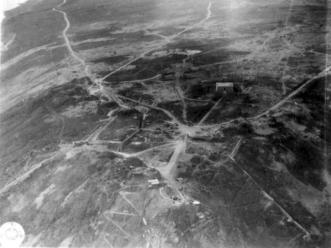 Vue de la festung Brest pendant la bataille de Brest, U.S. Army Signal Corps, septembre 1944 : vue aérienne oblique des fortifications de la pointe des EspagnolsImmatriculation
