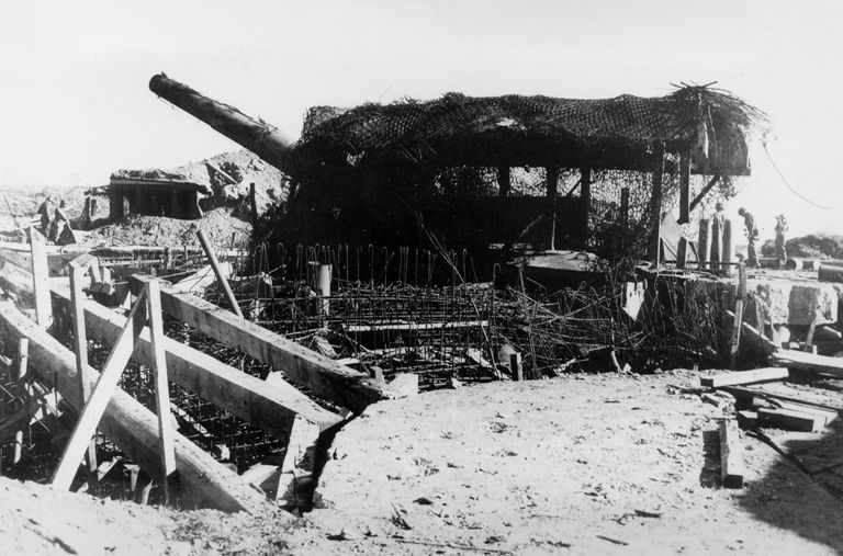 Vue de l'un des canons de 28 cm après les combats de septembre 1944Immatriculation
