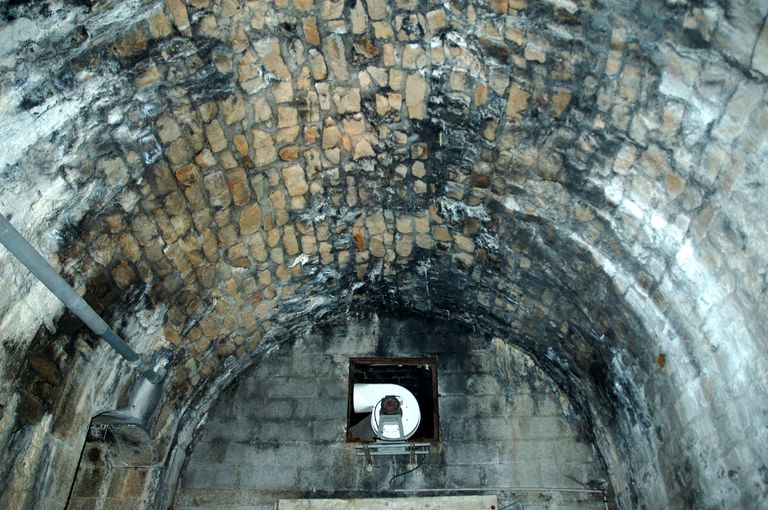 Vue de l'entrée du tunnel d'Heurtebise traversant le front bastionné de l'Harteloire dit Nouvelle enceinte (construite en 1848) : intérieur du sas, voûte en moellonsImmatriculation