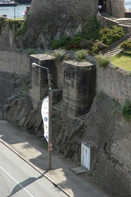 Vue des vestiges du pont tournant ou Pont National de Brest : pile ouest du pont au pied de la tour TanguyImmatriculation