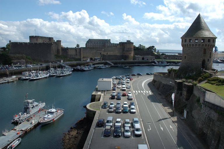 Pont National (pont tournant Schneider et Compagnie Creusot) puis pont de Recouvrance (pont levant), la Penfeld (Brest),
