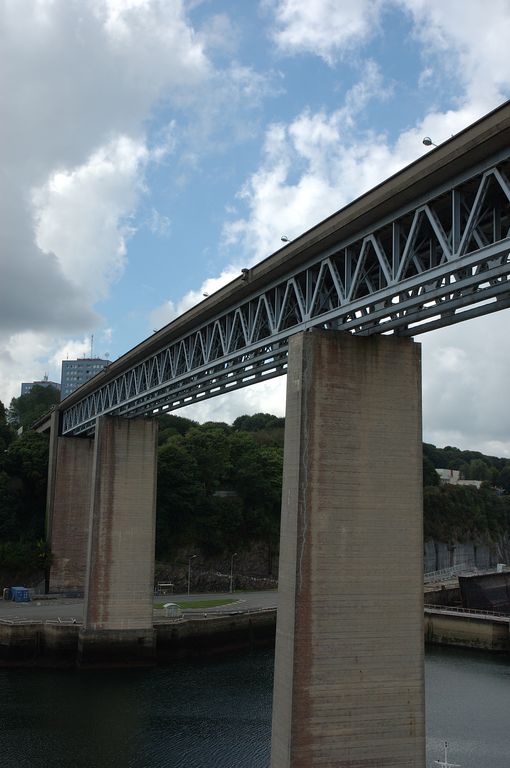Vue du pont routier de l'Harteloire construit de 1948 à 1951 : pont en poutre en treillis, treillis type WarrenImmatriculation