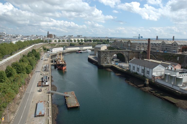 Vue générale de la Penfeld : à droite, le plateau des Capucins et le môle dit du viaducImmatriculation
