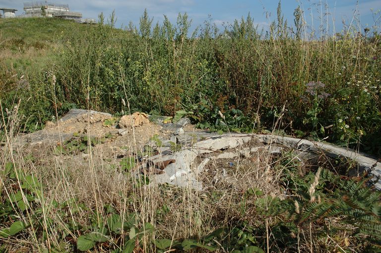 Vue d'un poste d'observation et de tir bétonné dit "Tobruk-Stand"- en défense rapprochée (n° 1)Immatriculation