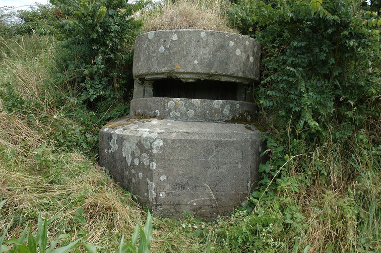 Vue de l'ensemble fortifié situé à l'ouest de Plougonvelin de part et d'autre de la Départementale n° 85 : marquage du poste d'observation dit Tobrouk sous masque orienté vers l'ouestImmatriculation