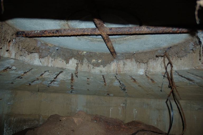 Vue d'un ensemble fortifié de la Presqu'île de Kermorvan constitué d'un Tobrouk pour mortier de 80 mm, tranchée bétonnée et abri : marquage allemandImmatriculation