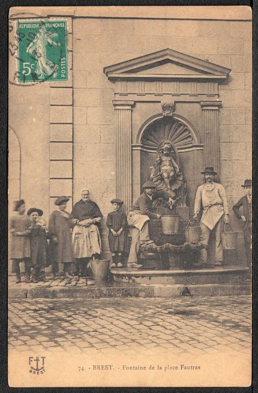 Vue de la fontaine de la place Fautras à Brest, carte postaleImmatriculation
