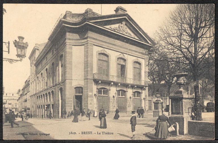 Vue de la fontaine du théatre à Brest, carte postaleImmatriculation