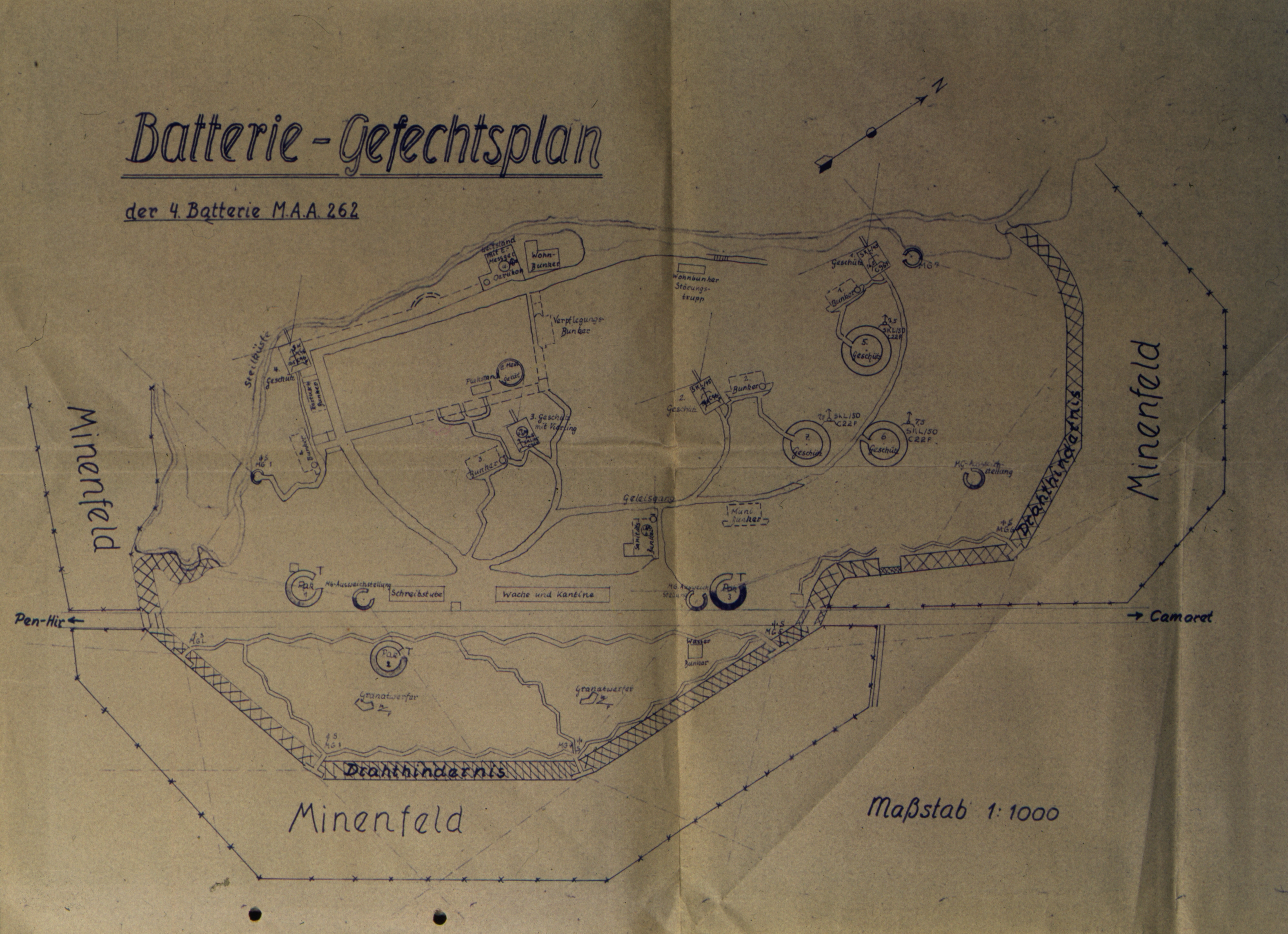 Plan de la batterie de Kerbonn, 1943 (Batterie - Gefechtsplan. Der 4. batterie M.A.A. 262)Immatriculation